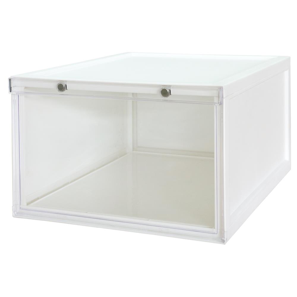 HomeBase STACKO Hộp đựng giày bằng nhựa nắp khóa nam châm MONO Thái Lan W28xH18.3xD37cm màu trắng