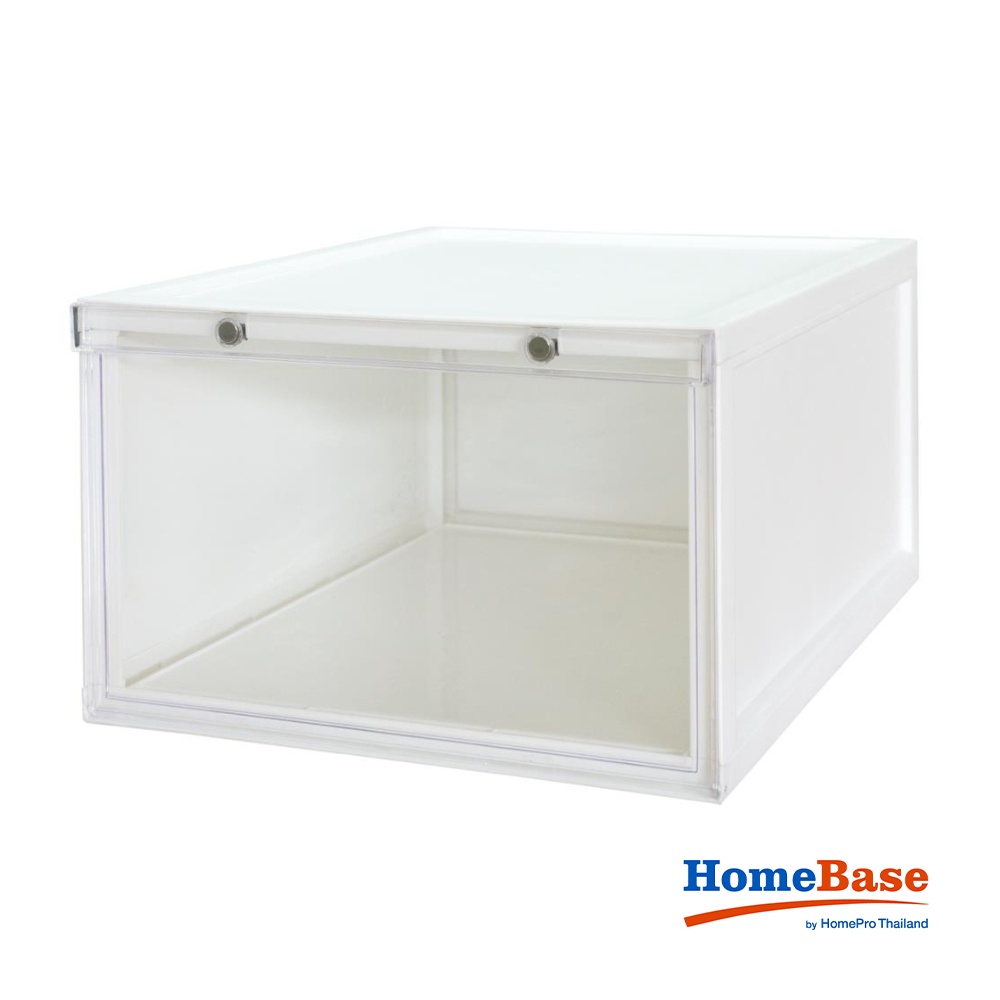 Giới thiệu HomeBase STACKO Hộp đựng giày bằng nhựa nắp khóa nam châm MONO Thái Lan W28xH18.3xD37cm màu trắng