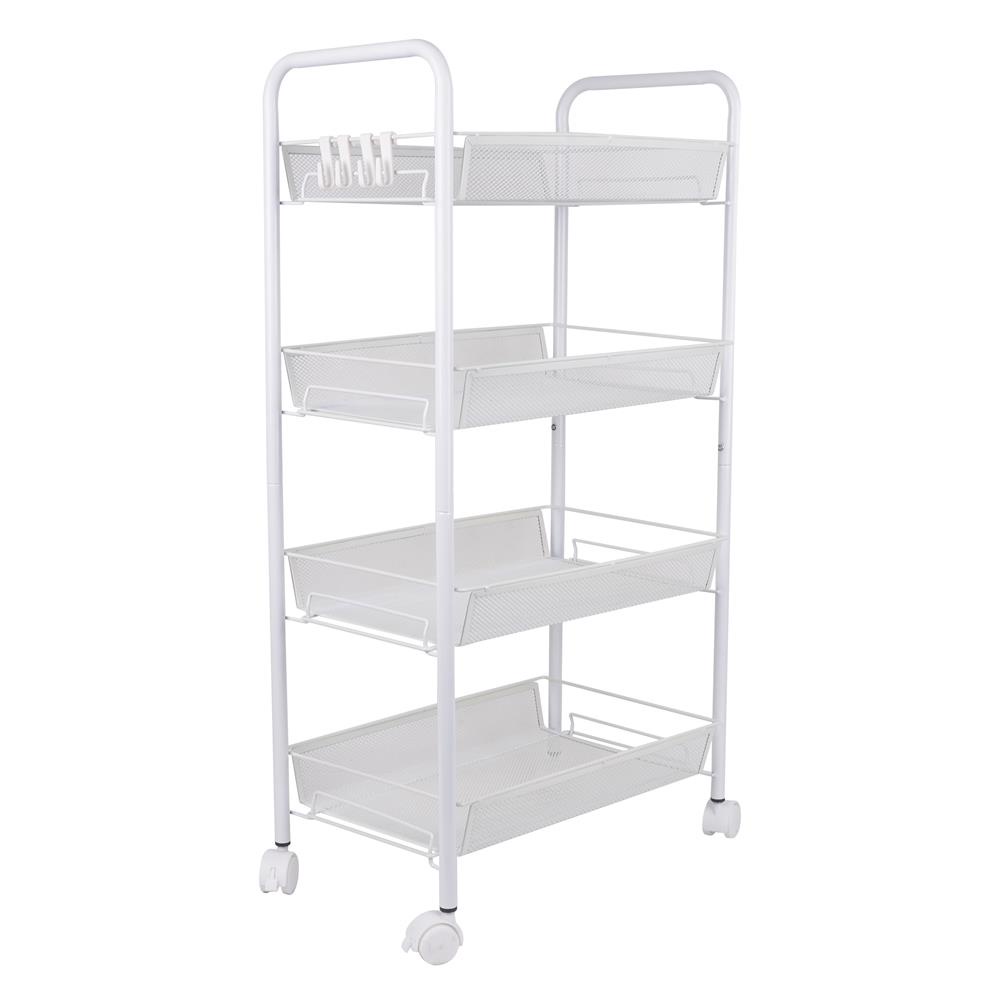 HomeBase STACKO Kệ 4 tầng bằng lưới thép có bánh xe có 4 móc treo IVY W45xH85xD26cm màu trắng