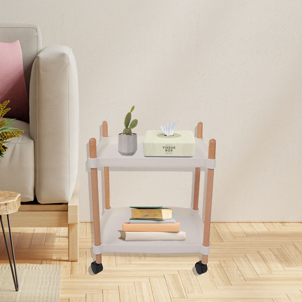 Giới thiệu HomeBase STACKO Kệ để đồ 2 tầng bằng nhựa có bánh xe FOREST Thái Lan W47xD31xH52cm màu trắng