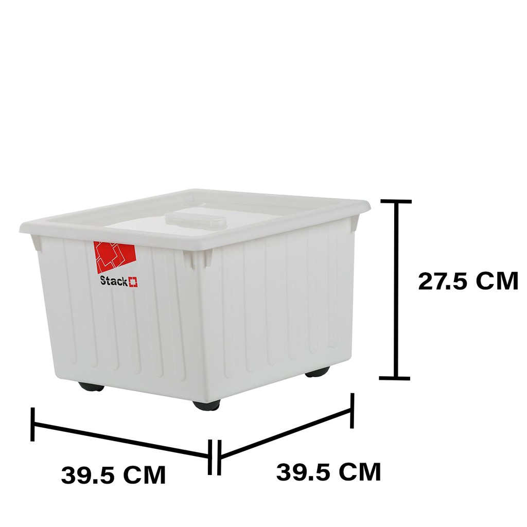 Giới thiệu HomeBase STACKO Thùng nhựa đa năng có nắp đậy và bánh xe Thái Lan 28.5L W39.5xD39.5xH27.5 Cm Trắng