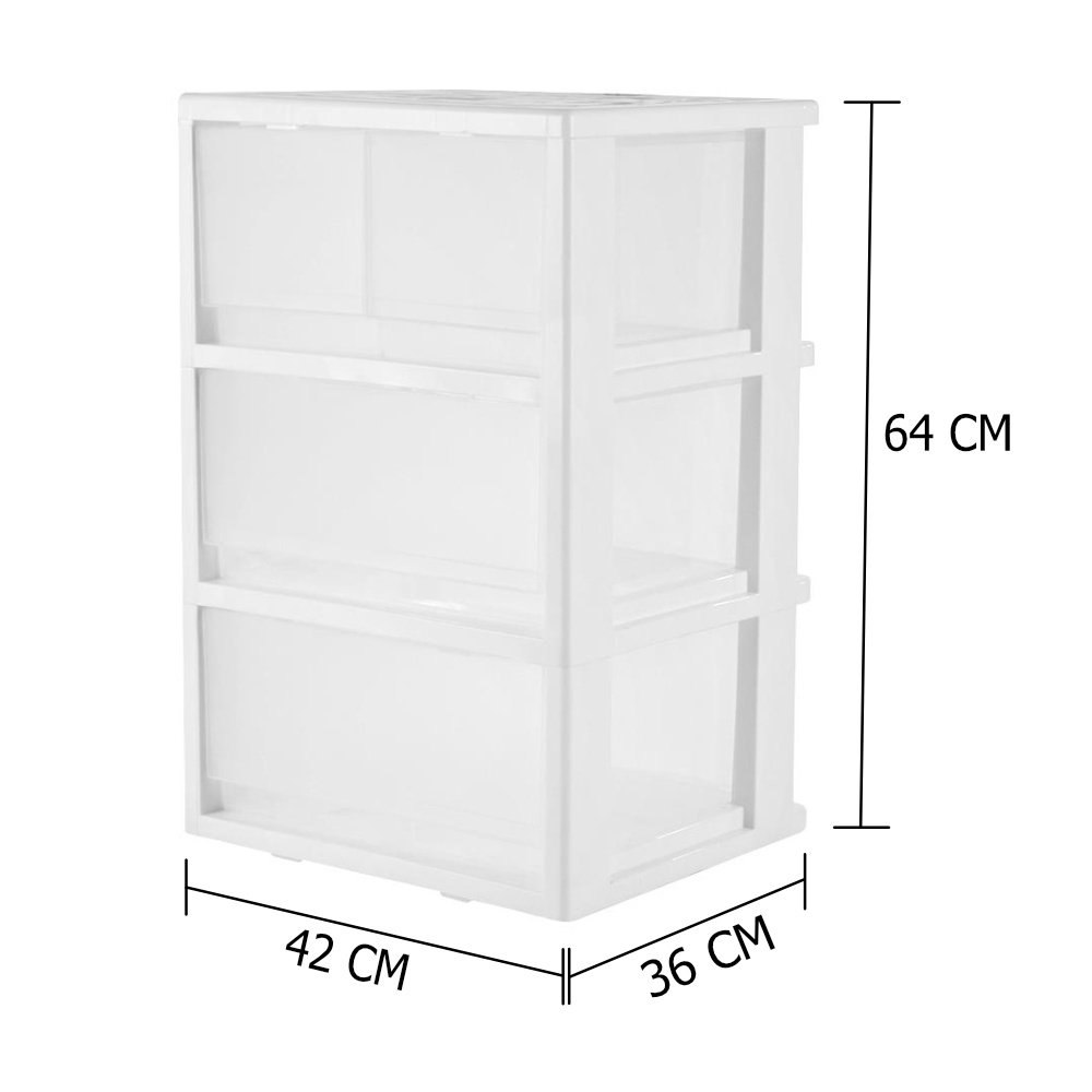 HomeBase STACKO Tủ nhựa 3 ngăn kéo có bánh xe FINE Thái Lan W42xH64xD36 màu trắng trong