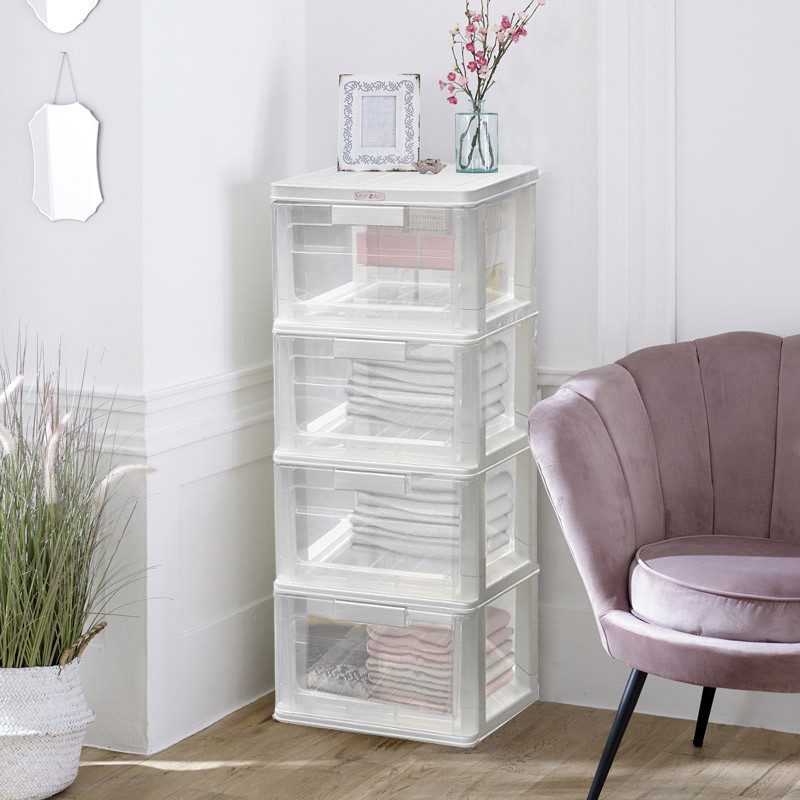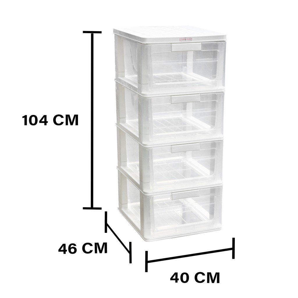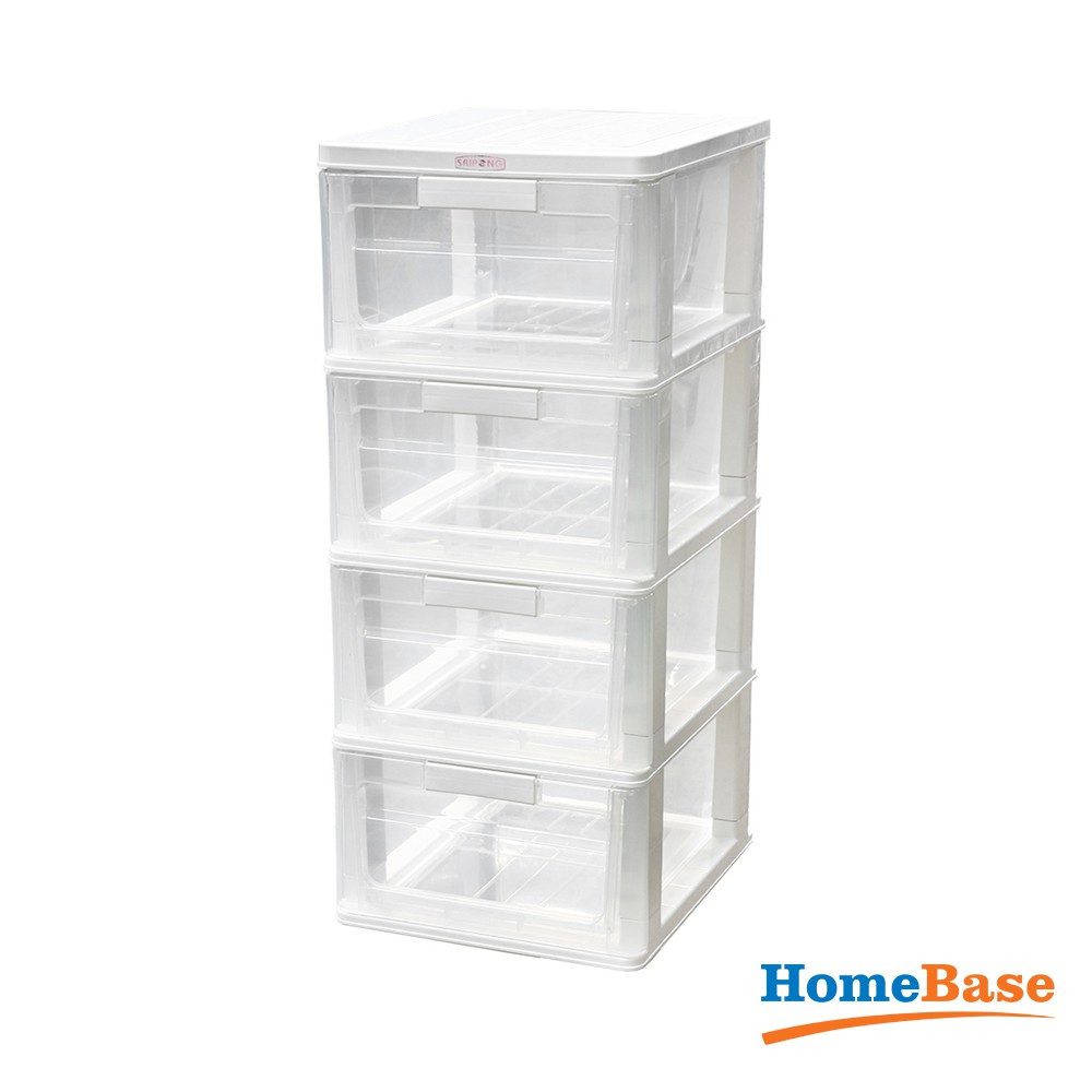 HomeBase STACKO Tủ nhựa 4 tầng Thái Lan W40xD46xH104 Cm màu trắng trong