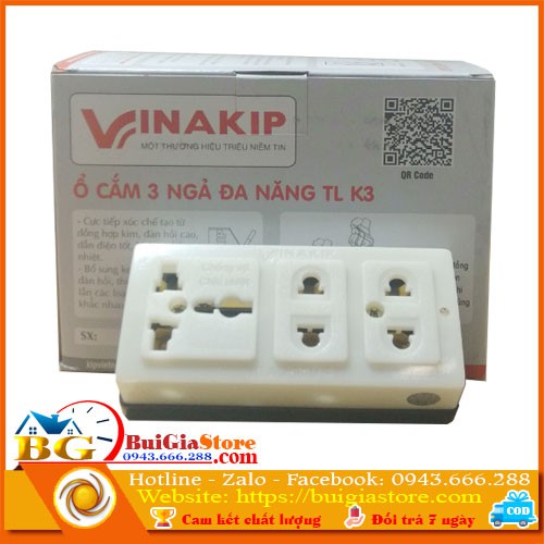 Thiết Bị Điện Gia Dụng > Mạch điện & Phụ tùng > Ổ cắm điện & Dây nối || Hộp 10 cái ổ cắm 3 ngả đa năng Vinakip K3Còn hàng
