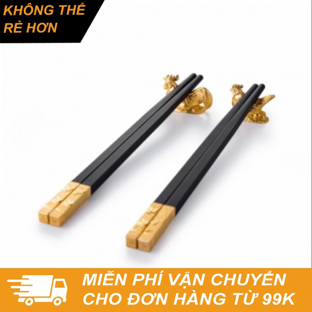 🌸 HỘP 10 ĐÔI ĐŨA ĐẦU MẠ VÀNG🍀 Đũa hợp kim chất lượng cao cấp nhất, mạ vàng, thân kẻ caro, chịu được nhiệt độ lên đến 260 độ C, đũa dài tiêu chuẩn 27cm. Màu đen, kẻ ô vuông, mạ vàng phía cuối, siêu bền.