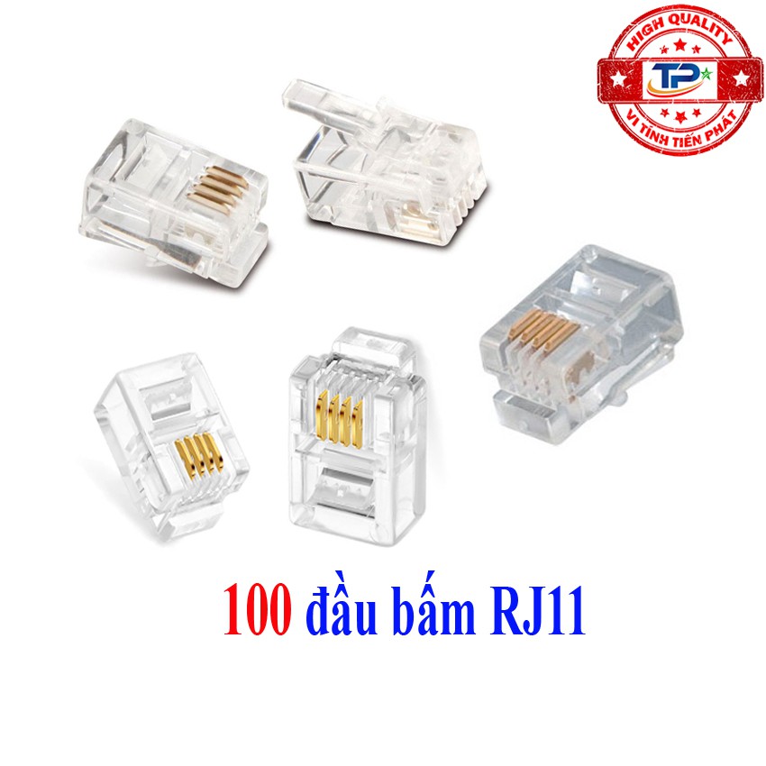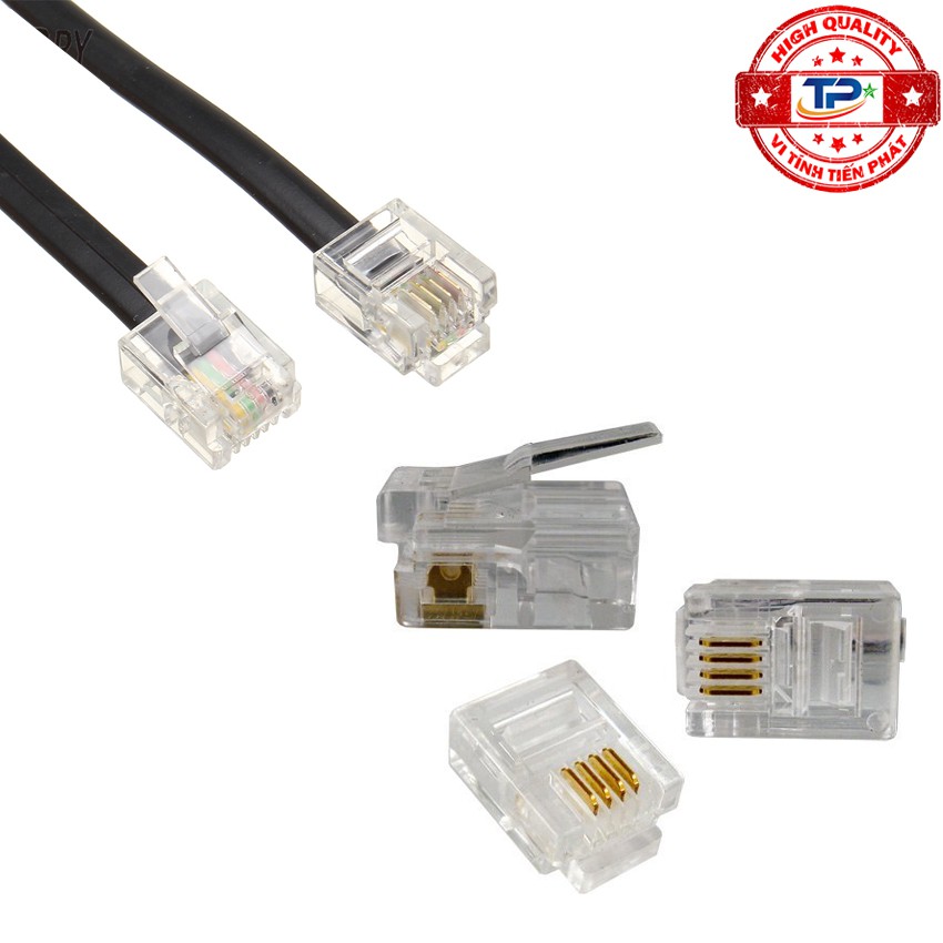 Đầu bấm RJ11 dùng cho cáp điện thoại bấm cáp điện thoại 1 sợi đôi 2 line, hoặc 02 sợi đôi 4 line đều được .