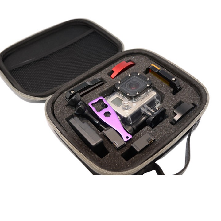 - Hộp dùng để máy GoPro hoặc các máy camera hành động và phụ kiện mini như thẻ nhớ dây đeo đầu, một số Mount dán, keo 3M, thẻ nhớ …
