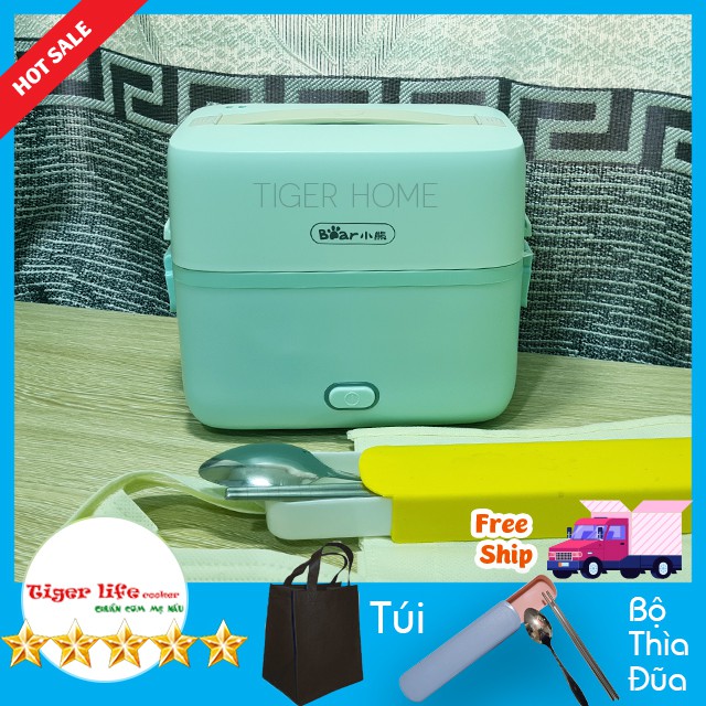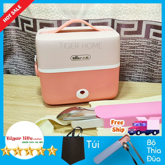 HỘP CƠM CẮM ĐIỆN 2 TẦNG 3 NGĂN - CHÍNH HÃNG BEAR VÀ LOTTOR - Tặng túi xách, Hộp đũa thìa, Ổ cắm điện 2 chân