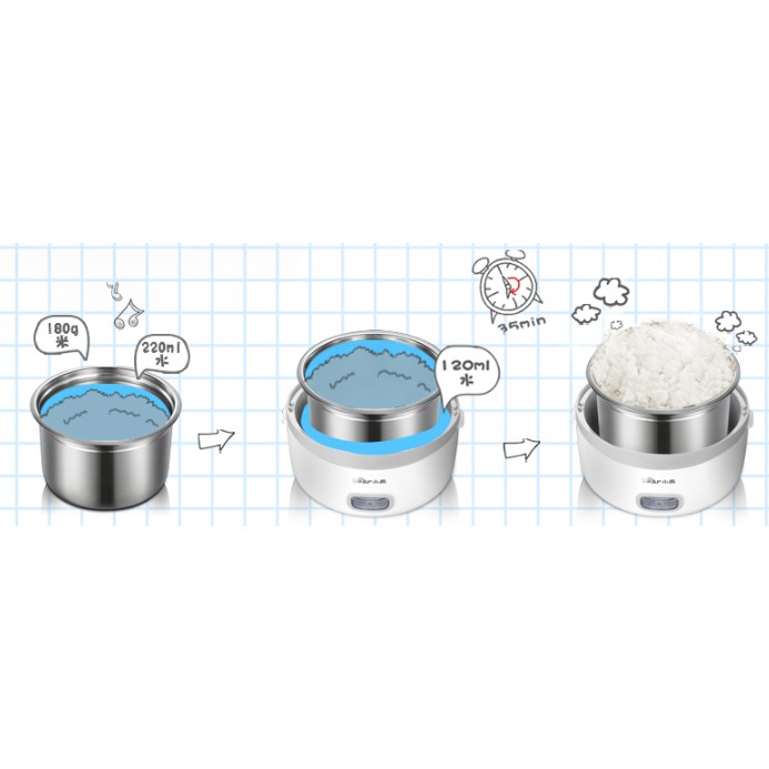 Thiết Bị Điện Gia Dụng > Đồ gia dụng nhà bếp > Nồi cơm điện || Hộp cơm cắm điện Bear DFH-B13E5, 1.3 lít, sử dụng để nấu, hâm nóng và giữ nhiệt cho thức ăn, dùng inox 304Còn hàng
