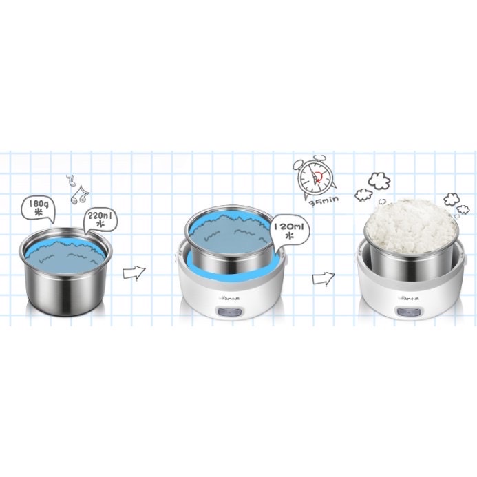 Thiết Bị Điện Gia Dụng > Đồ gia dụng nhà bếp > Nồi cơm điện || Hộp cơm cắm điện BEAR INOX 304 - Nồi cơm điện mini nấu chín, hâm nóng, giữ nhiệt cho thức ănCòn hàng