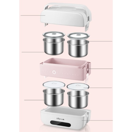 Thiết Bị Điện Gia Dụng > Đồ gia dụng nhà bếp > Nồi cơm điện || Hộp cơm cắm điện hẹn giờ Bear DFH-B15Z7, 1.7 lít, 2 tầng 4 ngăn, nấu chín, hâm nóng và giữ nhiệt, dùng inox 304Còn hàng