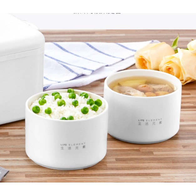 Hộp cơm cắm điện hẹn giờ Life Element F7, 2 bát gốm sứ to, nấu chín, hâm nóng và giữ nhiệt cho thức ăn, dung tích 1.2 lí