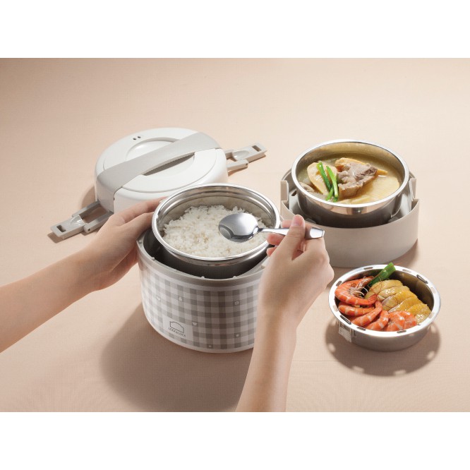 - Hộp hâm nóng thức ăn có ba tầng. Bạn có thể bảo quản cơm, thịt, súp riêng biệt để đáp ứng nhu cầu bữa ăn của bạn.