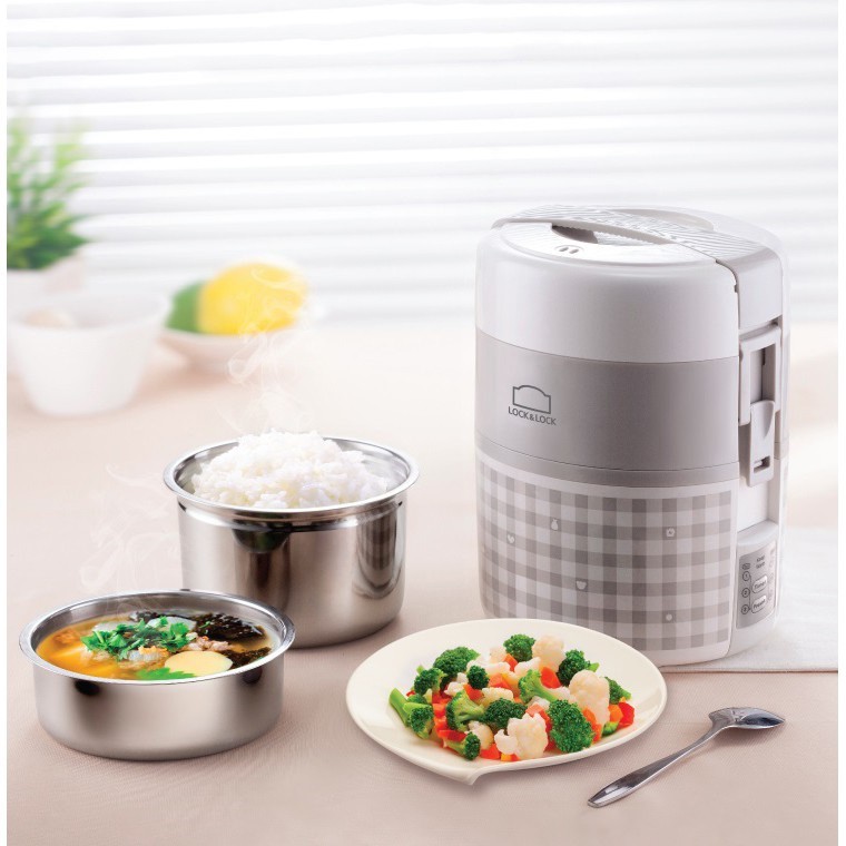 - Hộp cơm cắm điện Lock&Lock EJR216 lý tưởng để nấu cơm, hấp trứng, rau, thịt và giữ ấm thức ăn.