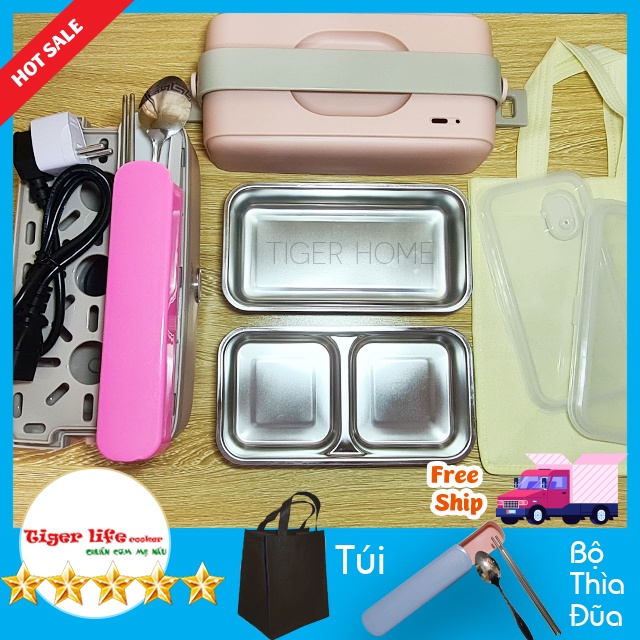 HỘP CƠM CẮM ĐIỆN 2 TẦNG 3 NGĂN - CHÍNH HÃNG BEAR VÀ LOTTOR - Tặng túi xách, Hộp đũa thìa, Ổ cắm điện 2 chân.