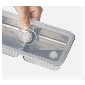 - Khi mang đến công ty sử dụng, có thể bỏ lại phần vỏ nhựa bên ngoài, và chỉ cần mang khay inox về.