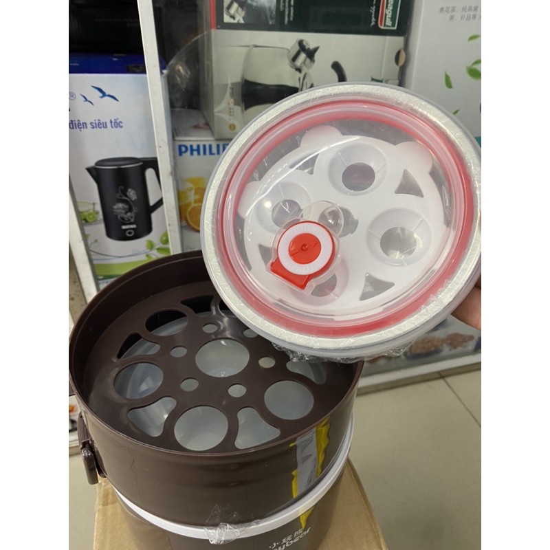 -➡ 3 ngăn inox (2 nắp: nắp ngăn canh có roăng cực khít)