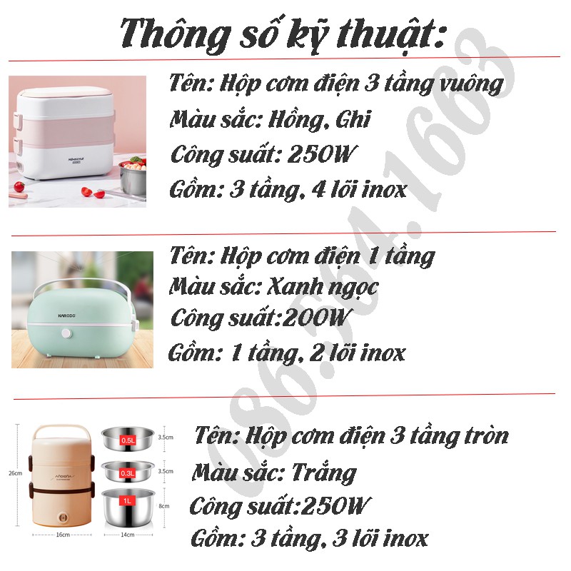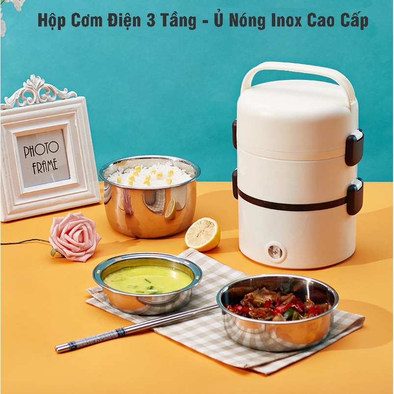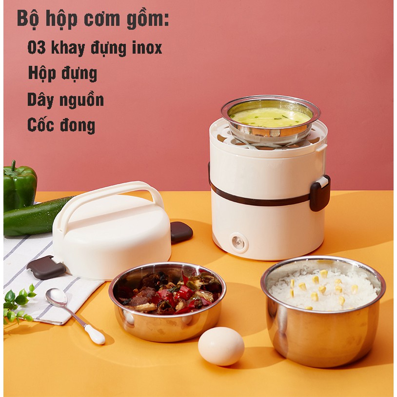 Hộp cơm hâm nóng đa năng 3 tầng 4 khay đựng thức ăn phù hợp nhu cầu sử dụng giữ ấm cơm cho nhân viên văn phòng, mang theo đồ ăn đi dã ngoại, người làm việc bên ngoài, thậm chí dùng để nấu cơm cho gia đình từ 1-3 người. Hộp hâm cơm thức ăn là loại nồi cơm mini có cắm điện làm chín thức ăn bằng hơi nước phục vụ nhu cầu ăn nóng, ăn sạch nhưng gọn nhẹ của người tiêu dùng.🌸🌸🌸 THÔNG TIN SẢN PHẨM:
