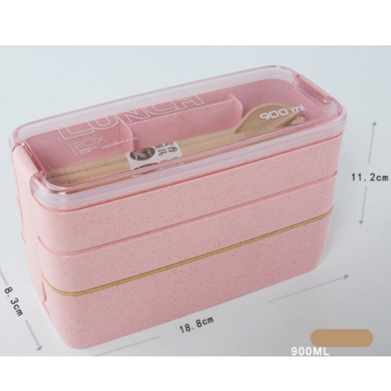 Giới thiệu Hộp cơm lúa mạch 3 tầng kèm thìa dĩa hình chữ nhật, nhỏ gọn phù hợp sinh viên người làm văn phòng
