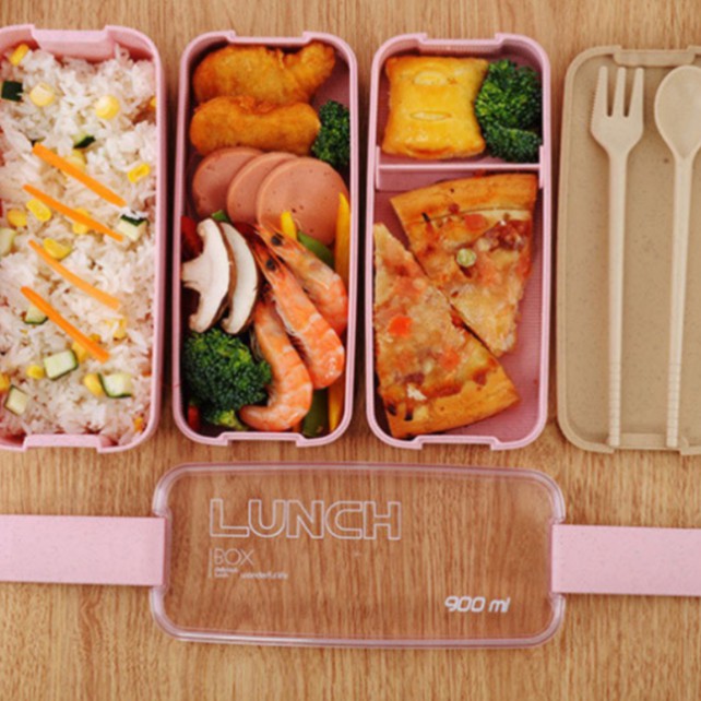 Nhà cửa & Đời sống > Bộ đồ bàn ăn > Dĩa || Hộp cơm lúa mạch 3 tầng kèm thìa dĩa hình chữ nhật, nhỏ gọn phù hợp sinh viên người làm văn phòngCòn hàng