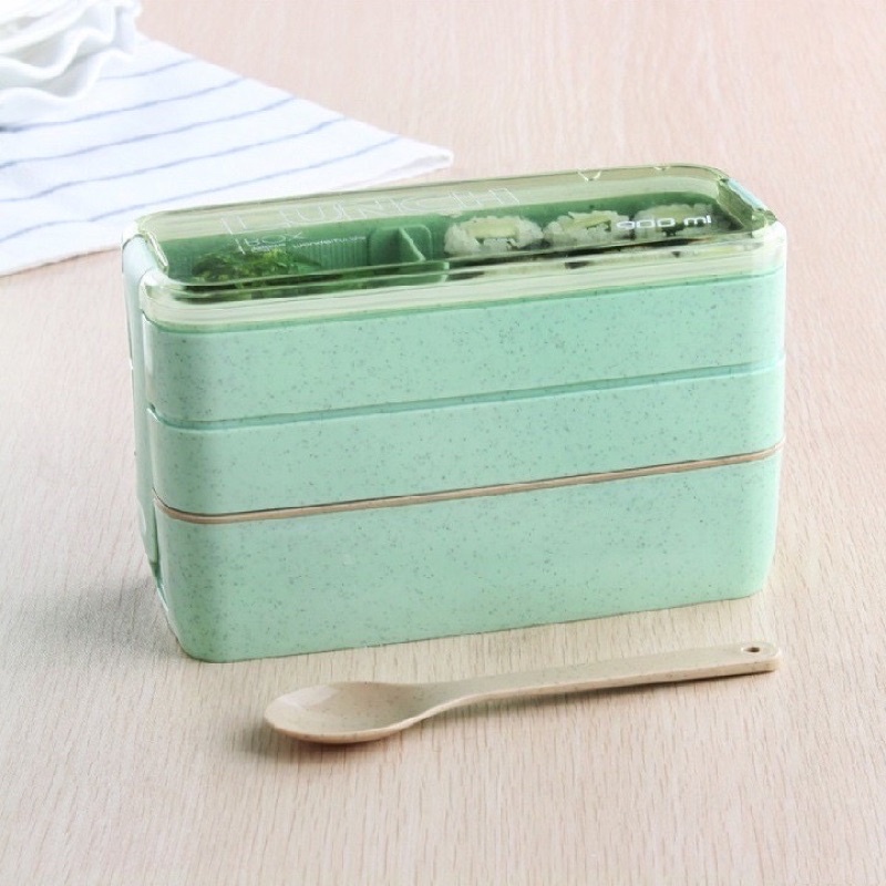 🍱🍱🍱HỘP CƠM LÚA MẠCH 3 tầngTẶNG KÈM BỘ ĐŨA THÌA INOX 🍱🍱🍱
