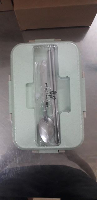 Hộp cơm lúa mạch kèm đũa thìa inox