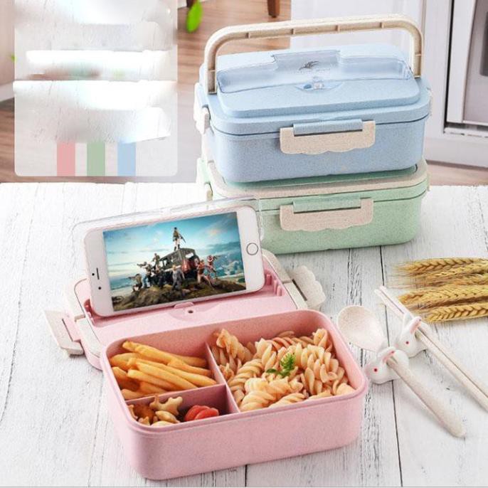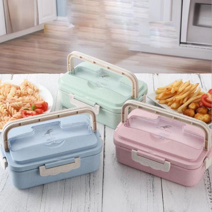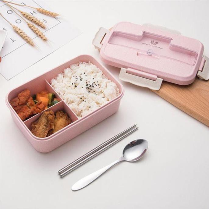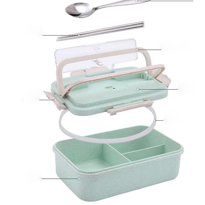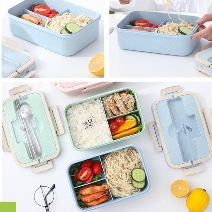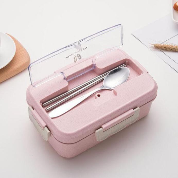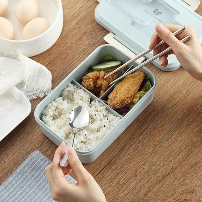 Hộp Cơm Lúa Mạch Tặng Kèm Đũa , Thìa Inox