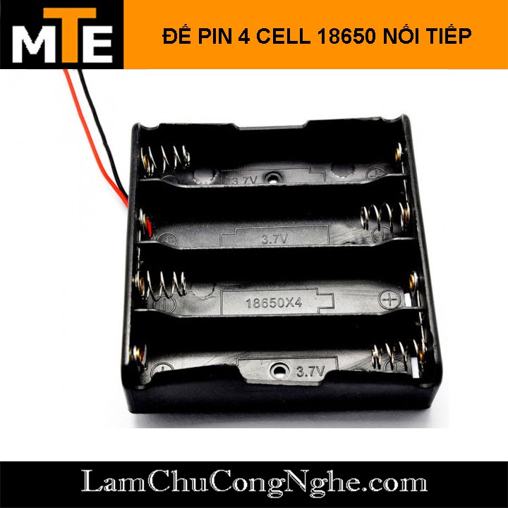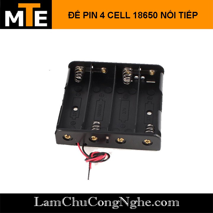 Hộp đế pin 4 viên 18650 là sản phẩm đế lắp cố định pin kích cỡ 18650 dùng để cấp nguồn cho robot, xe điều khiển, dự án cần sử dụng pin sạc nhiều lần..vv. Sản phẩm có nhiều loại khác nhau như 1pin, 2 pin, 3 pin, 4 pin nối tiếp cho khách hàng lựa chọn tùy theo nhu cầu sử dụng.