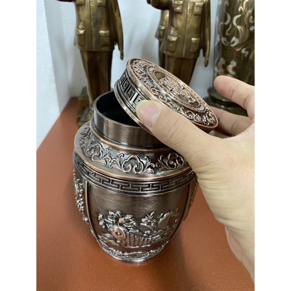 Nhà cửa & Đời sống > Dụng cụ nhà bếp > Dụng cụ pha trà, cà phê || Hộp đựng chè hợp kim cao cấp mẫu tứ cảnh giả cổCòn hàng