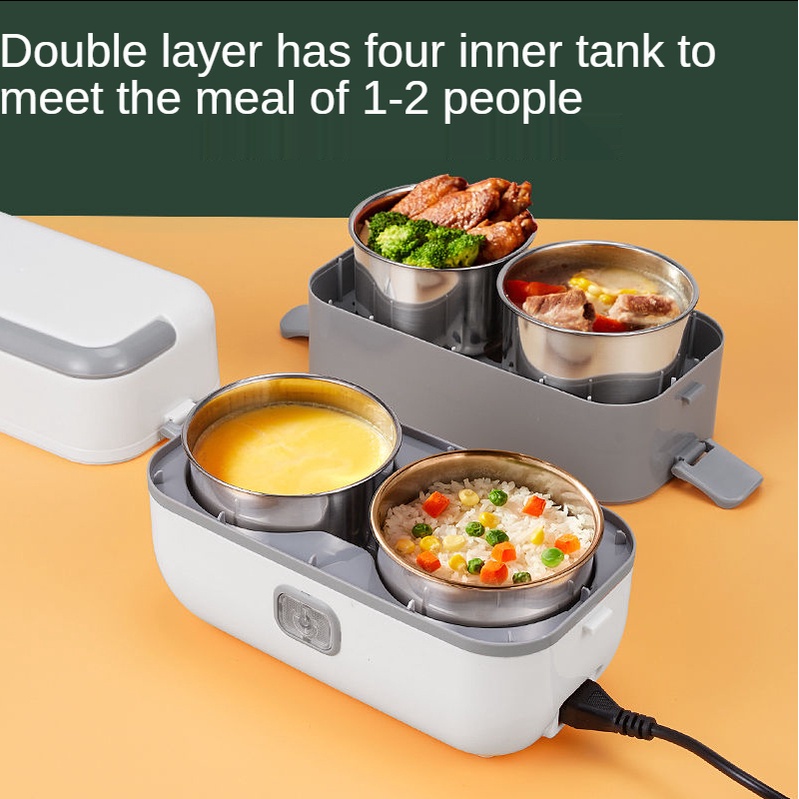 => Thêm vào đó hộp cơm hâm nóng 2 tầng còn có khả năng tự động ngắt khi nóng đủ độ, 2 nắp đậy chống tràn, thức ăn không bị tràn, mùi không lẫn với nhau và không thoát ra ngoài.