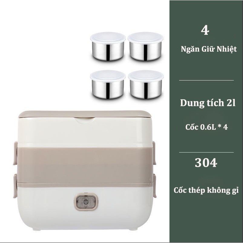 Hộp cơm điện - Hộp tự động hâm nóng cơm tiện lợi 2 tầng, khay inox không rỉ 400W - 2 Lít