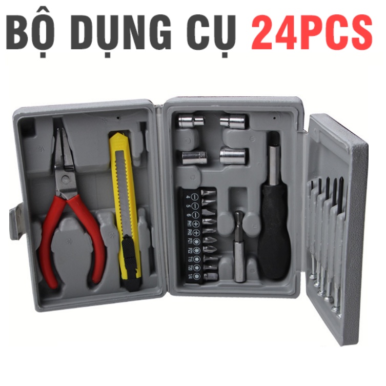 Hộp dụng cụ sửa chữa cầm tay mini đa năng gồm 24 món tiện ích chất liệu thép cao cấp