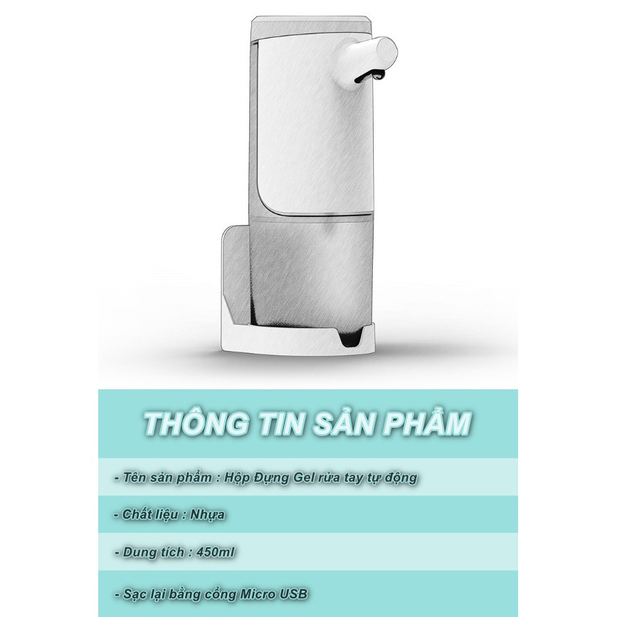 Giới thiệu Hộp Đựng Gel rửa tay tự động 450ml có thể sạc lại bằng USB - Home and Garden