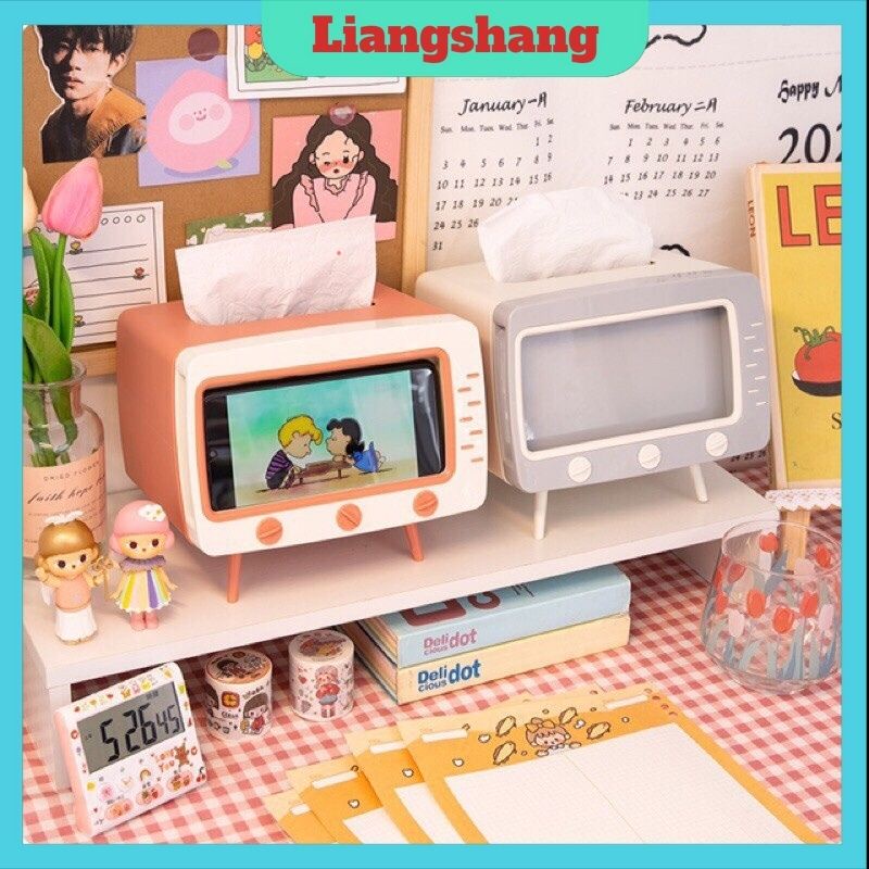 Nhà cửa & Đời sống > Sắp xếp nhà cửa > Hộp khăn giấy || Hộp đựng giấy ăn cao cấp kèm giá đỡ điện thoại 2in1 phong cách Art Deco - hộp giấy hình tiviCòn hàng