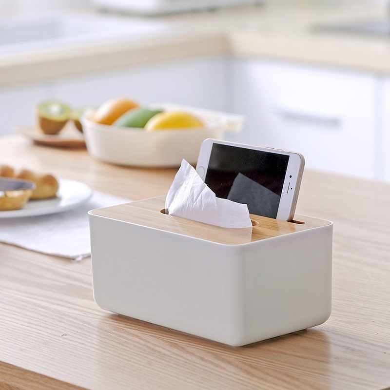 Với hộp đựng giấy ăn mặt gỗ tre sẽ giúp không gina phòng ăn nhà bạn thêm phần sang trọng nhé.