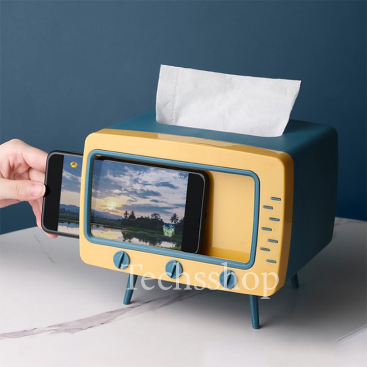 Hộp Đựng Giấy Hình Tivi Xinh Xắn Độc Đáo Cho Khe Để Điện Thoại - Khay Đựng Giấy Ăn - Hộp Đựng Điện Thoại Di Động