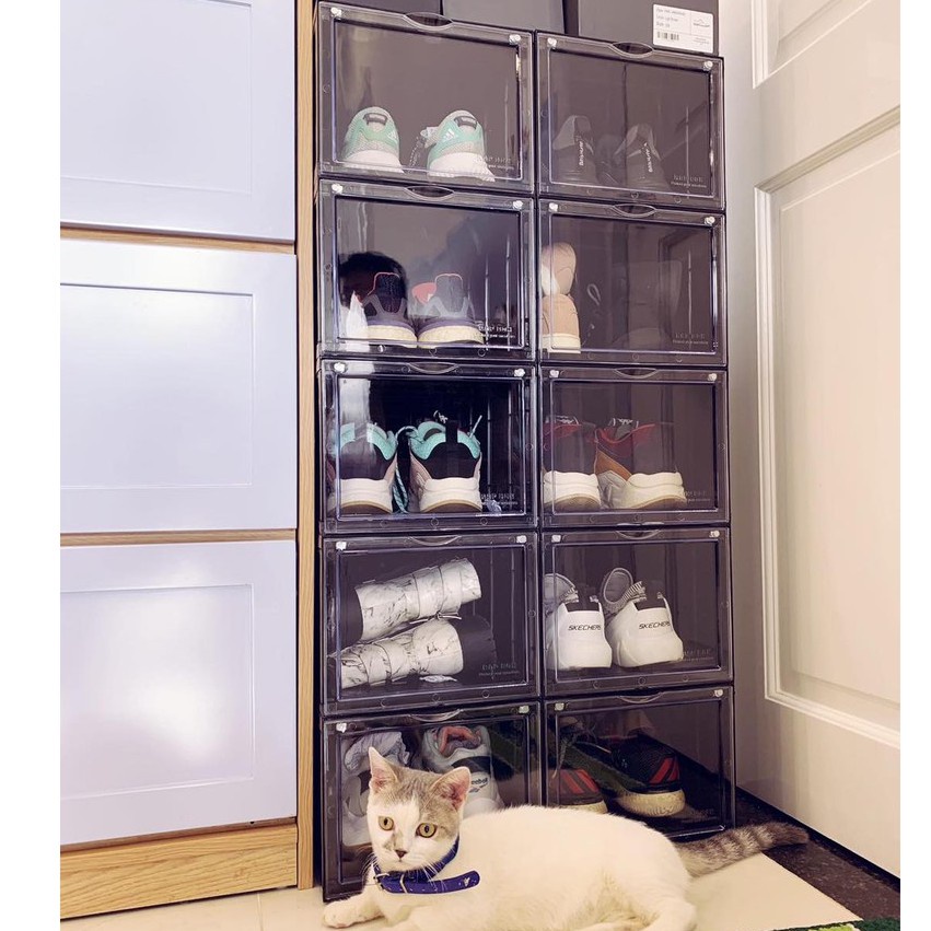 - Cửa mở trong suốt có thể nhìn thấy giày bên trong thuận tiện cho bạn lựa chọn đồi giày muốn đeo.