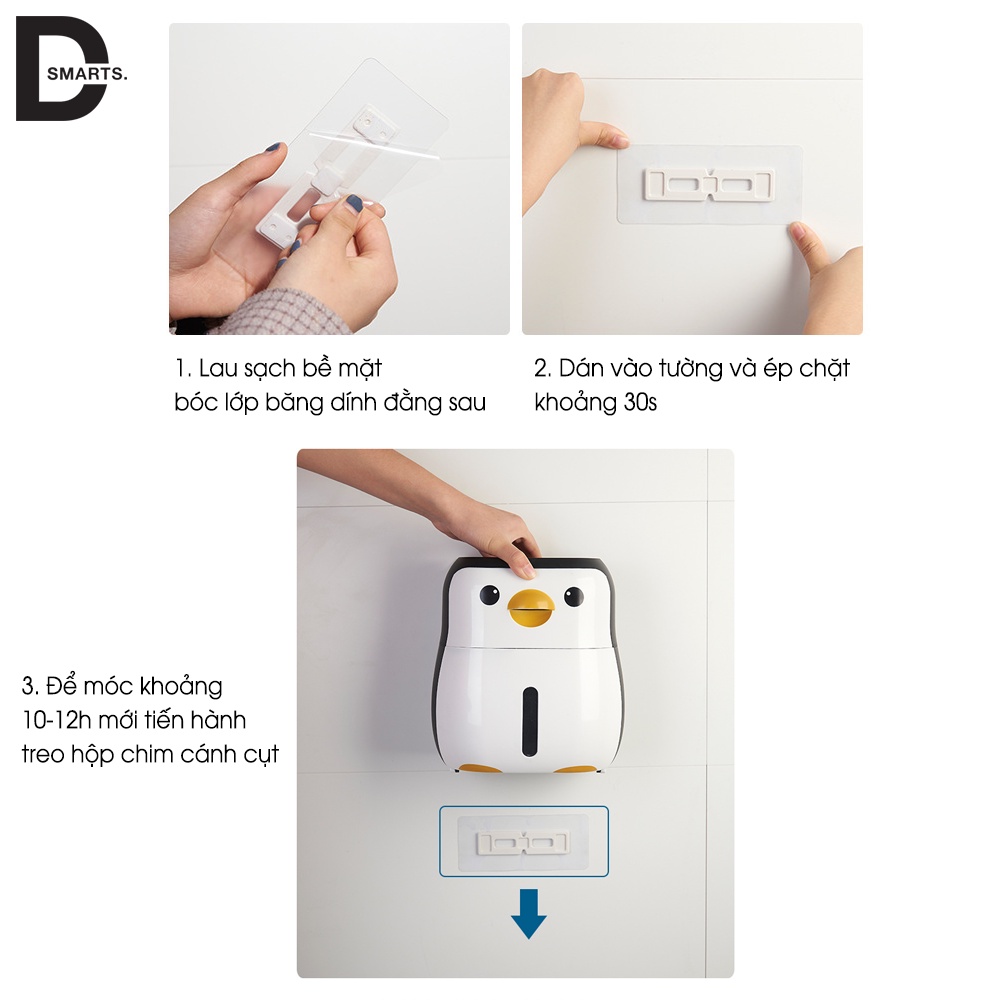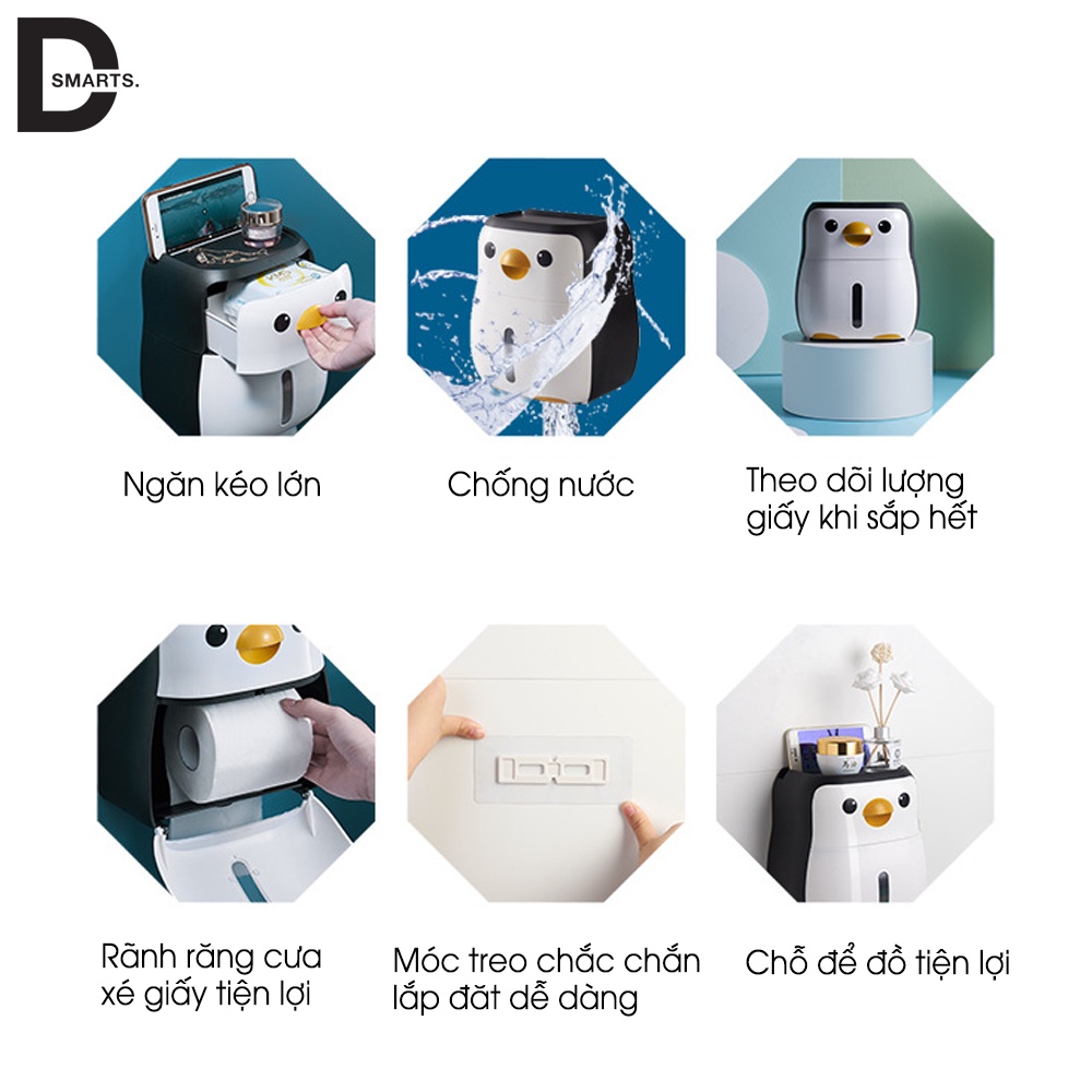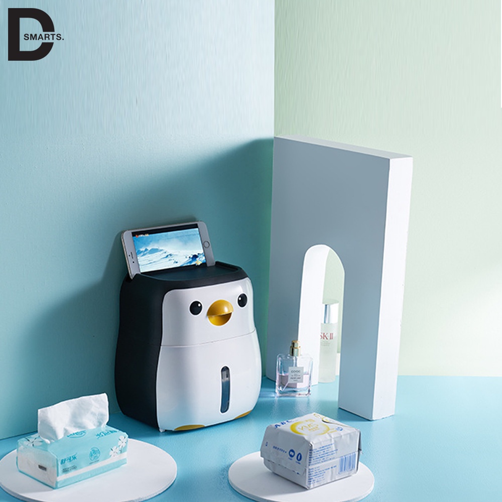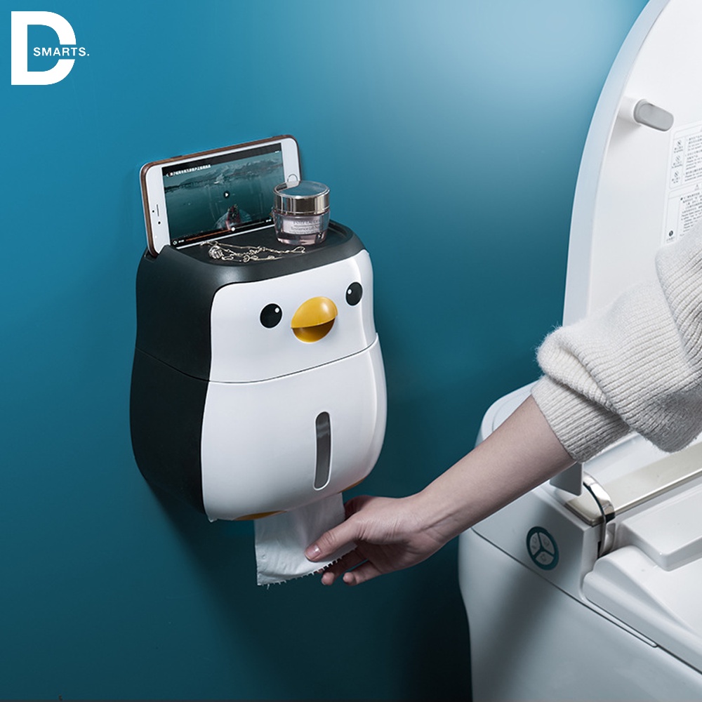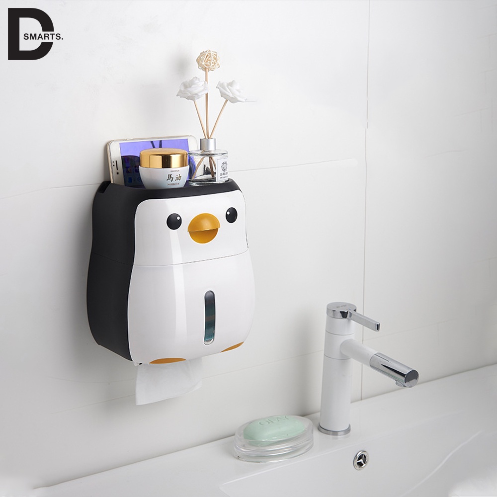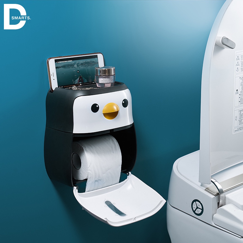 Hộp đựng giấy vệ sinh chim cánh cụt, chất liệu nhựa PPS, thiết bị nhà tắm chống nước 2 ngăn(Tặng kèm miếng dán)