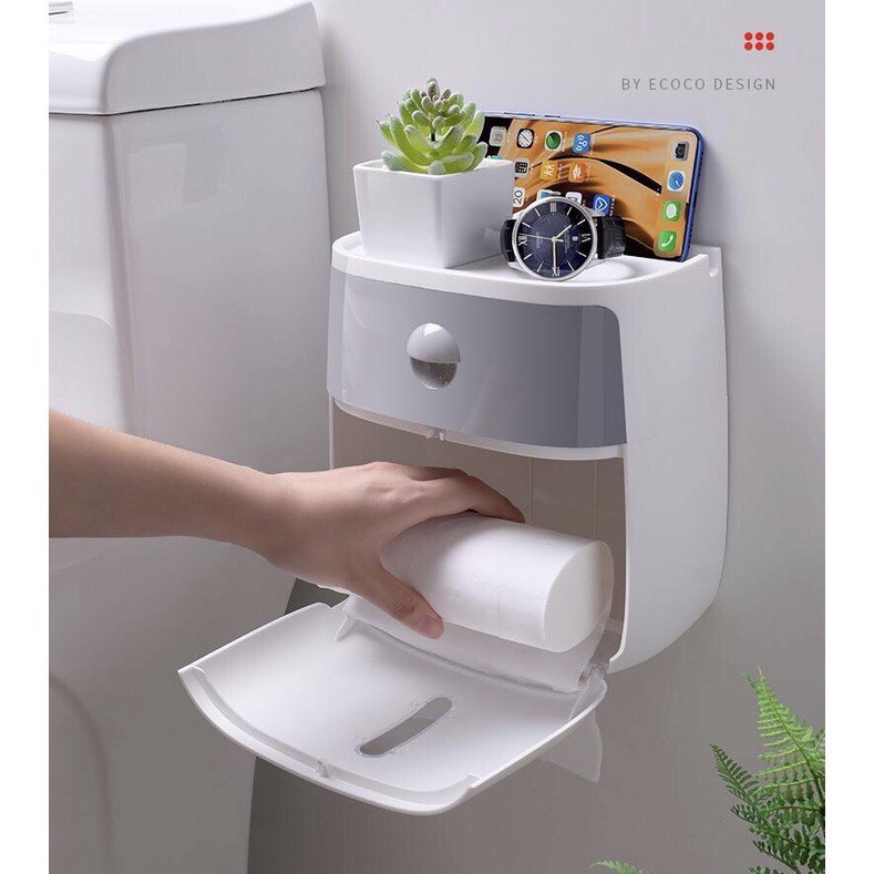 Nhà cửa & Đời sống > Sắp xếp nhà cửa > Hộp khăn giấy || Hộp đựng Giấy Vệ Sinh Dán Tường Thông Minh Có Ngăn Kéo Ecoco Cao Cấp 2 Tầng - Đa năng, Sang trọng, Tiện dụngCòn hàng