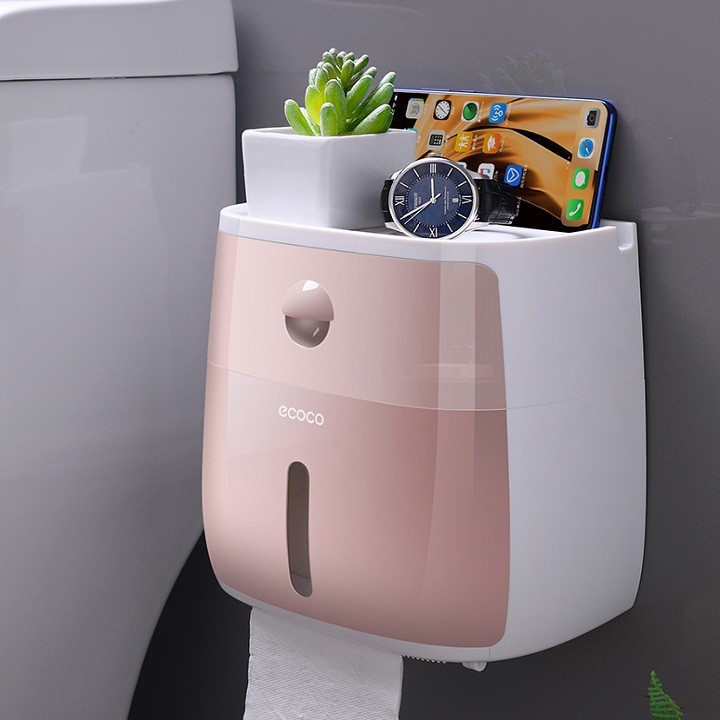 Hộp đựng giấy vệ sinh ecoco 1804 dán tường, chống nước, có khay để đồ