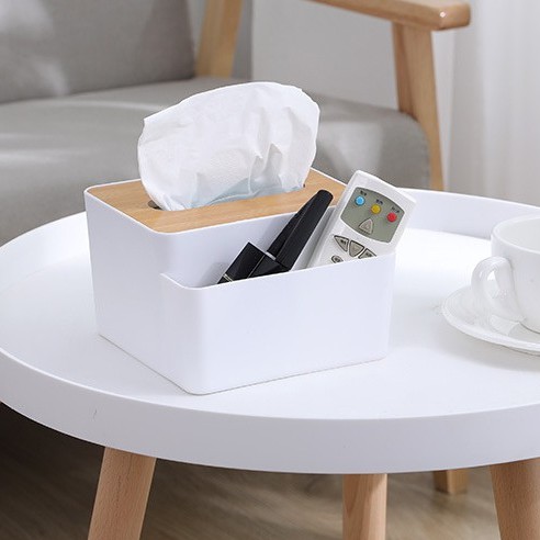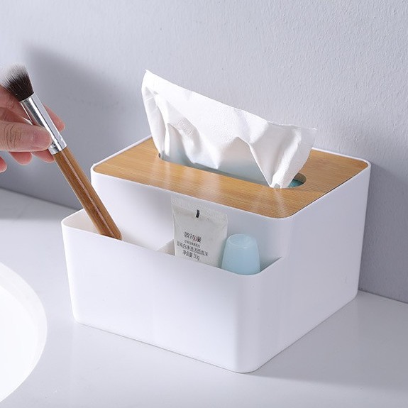 Hộp Đựng Giấy Vuông Để Bàn Ăn 2 Ngăn Đựng Đồ Thông Minh Nắp Gỗ Decor