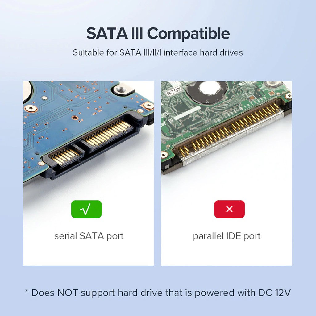 Sản phẩm chỉ thích hợp với dạng ổ cứng ngoài chuẩn giao diện SATA. (Không thích hợp với dạng ổ cứng giao diện IDE).