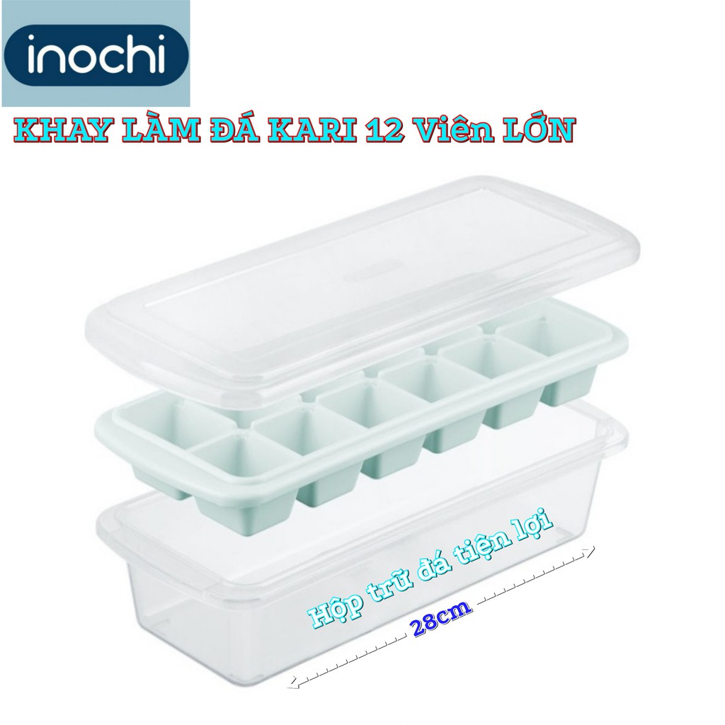 Bộ hộp Khay làm đá Vuông 12 viên KARI inochi - BPA free ,khuôn làm đá và thạch