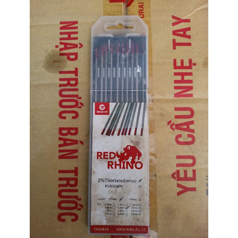 Giới thiệu 10 CÂY KIM HÀN TIG ĐẦU ĐỎ RED RHINO 2.4MM x 175MM