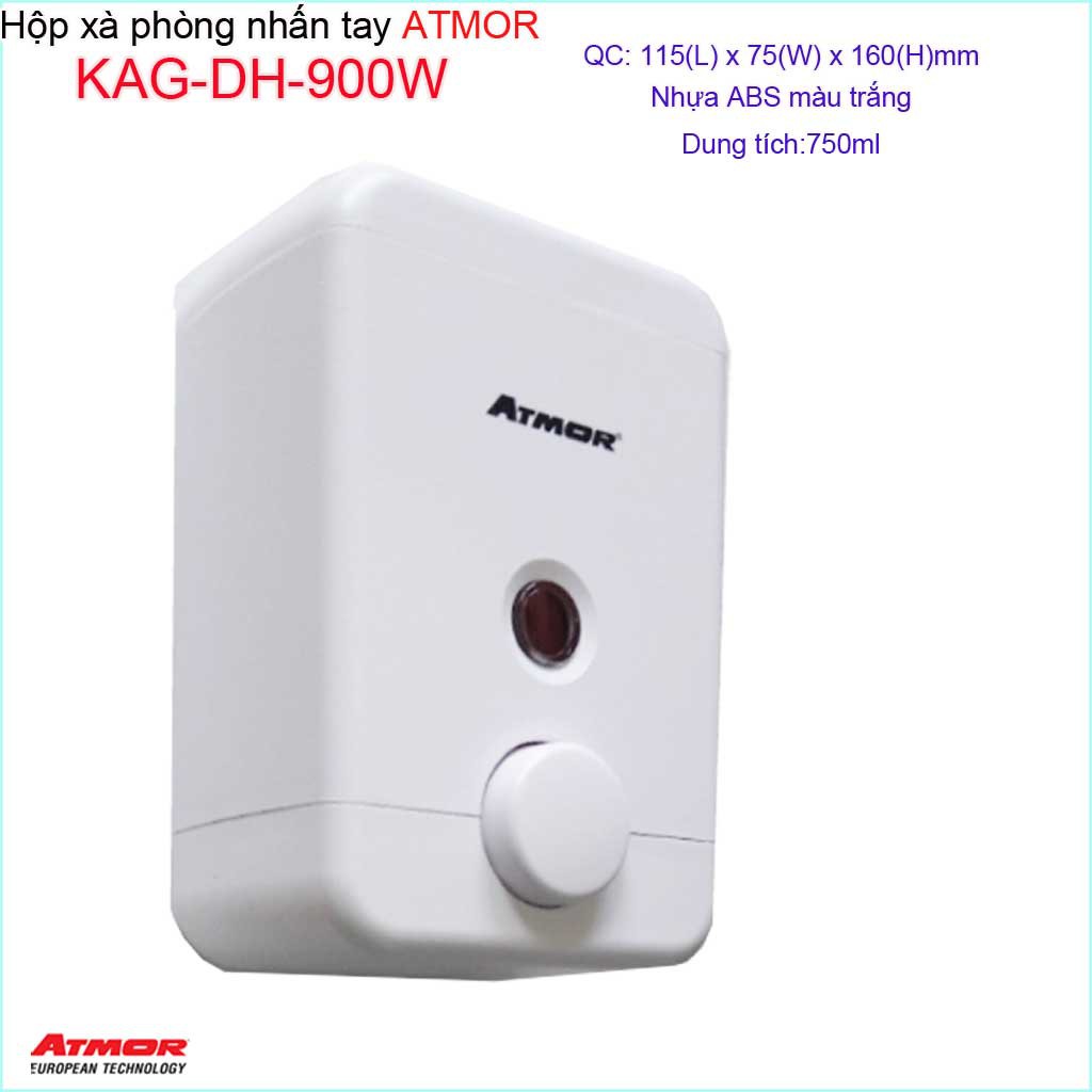 Hộp nhấn xà phòng Atmor KAG-DH900W-white trắng, bình xịt xà bông 750ml tiện dụng nhấn êm siêu bềnHộp nhấn xà phòng, Bình xịt xà phòng KAG-DH900W ( hay còn gọi là hộp xà phòng nhấn tay, hộp xà phòng treo tường, hộp đựng xà bông nước ...)