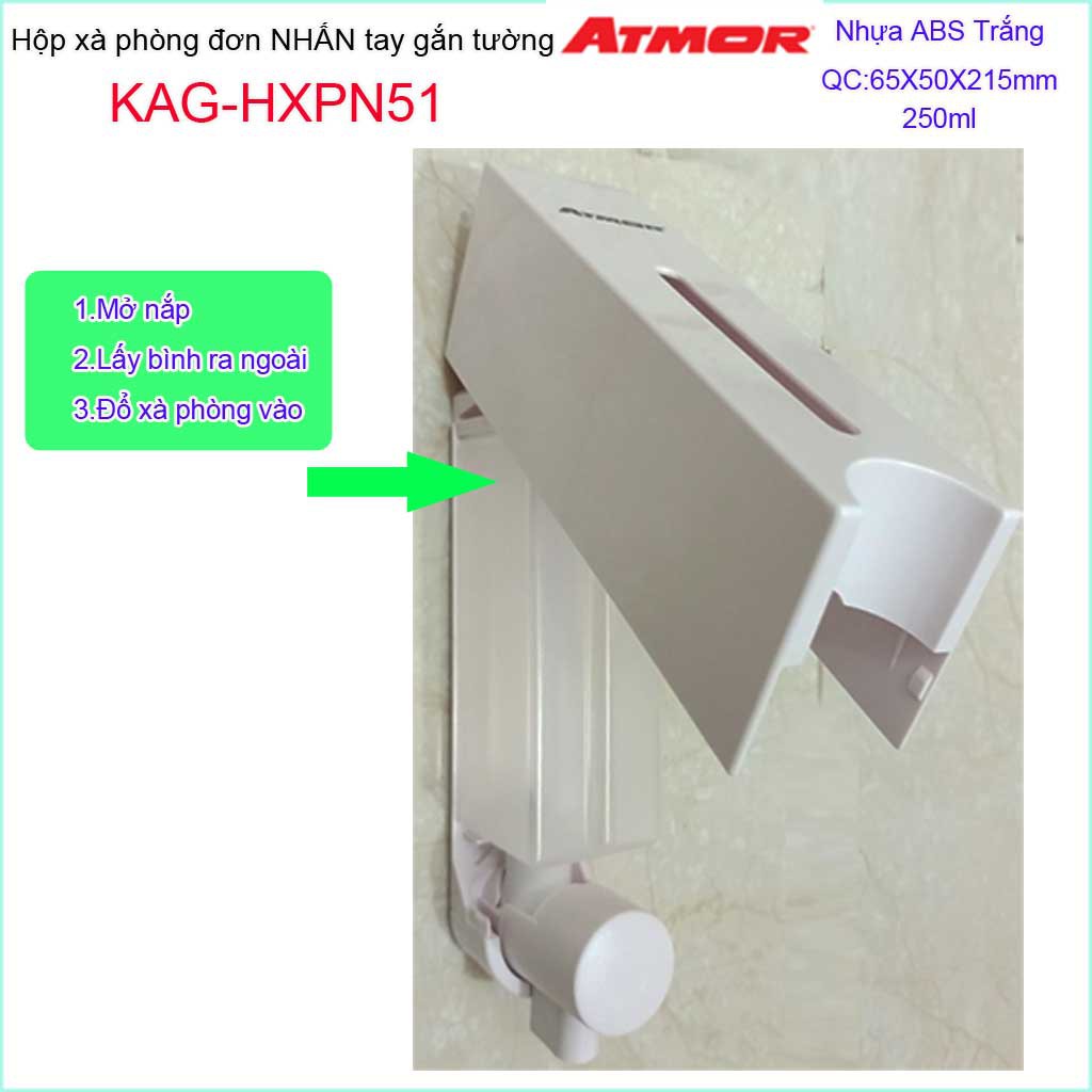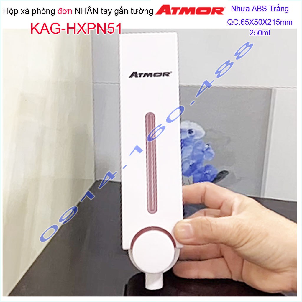 Hộp nhấn xà phòng Atmor KAG-HXPN51-Trắng-White, bình xịt xà bông 250ml thiết kế sang trọng nhấn êm siêu bềnKích thước 50mmx65mmx215mm ( dung tích 250ml)