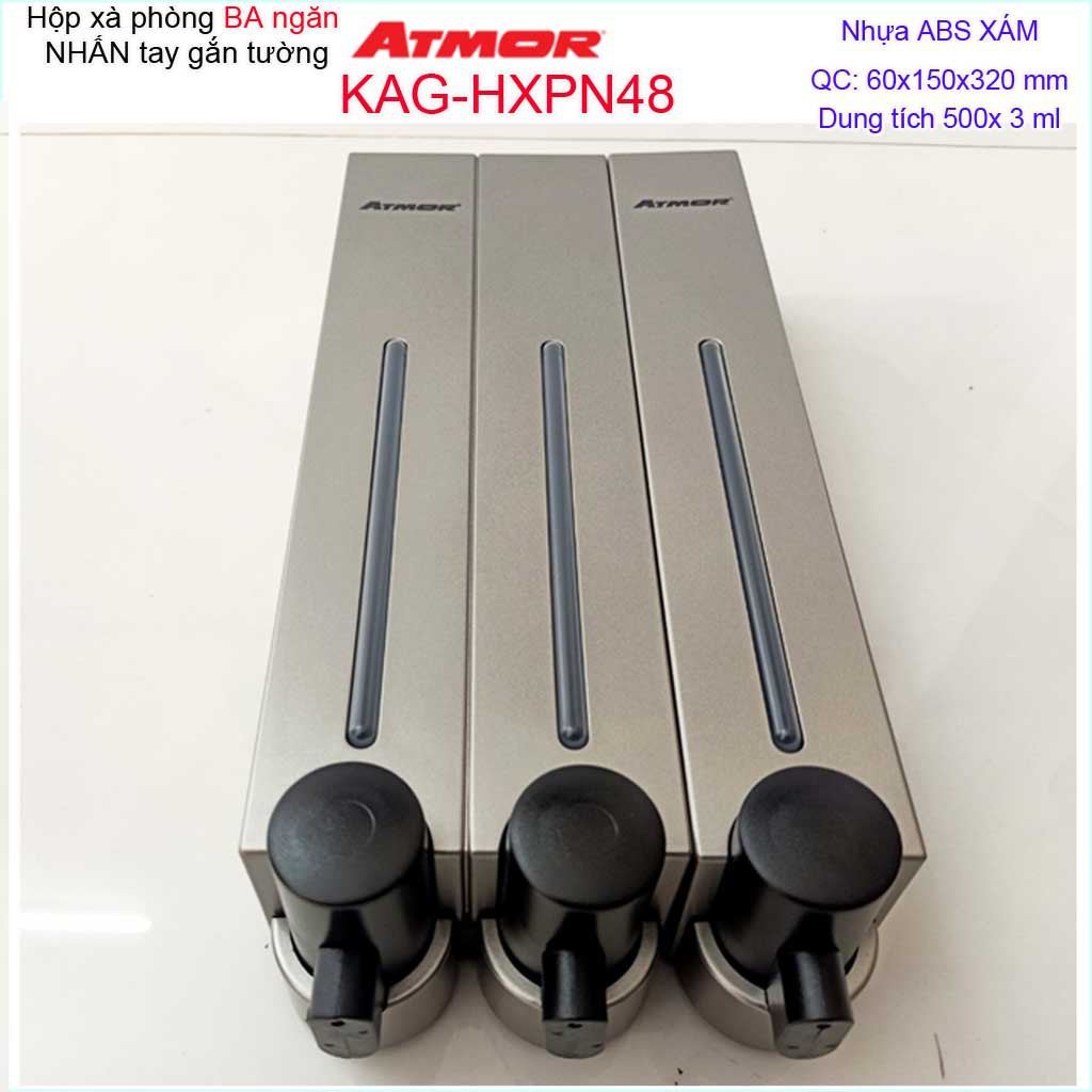 Hộp nhấn xà phòng Atmor KAG-HXPN48-grey xám, bình xịt xà bông 500ml x3 thiết kế sang trọng nhấn êm siêu bềnKích thước 60mmx150mmx320mm ( dung tích 500ml x 3)