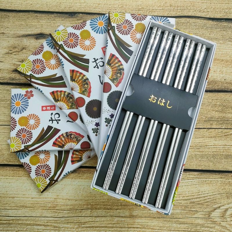 Nhà cửa & Đời sống > Dụng cụ nhà bếp > Cây vét bột & đồ gắp thức ăn || [ Hộp trắng PREMIUM ] bộ 5 đôi đũa Inox Shikisai Nhật Bản chịu nhiệt 200 độ - đũa kháng khuẩn chống ẩm mốcCòn hàng