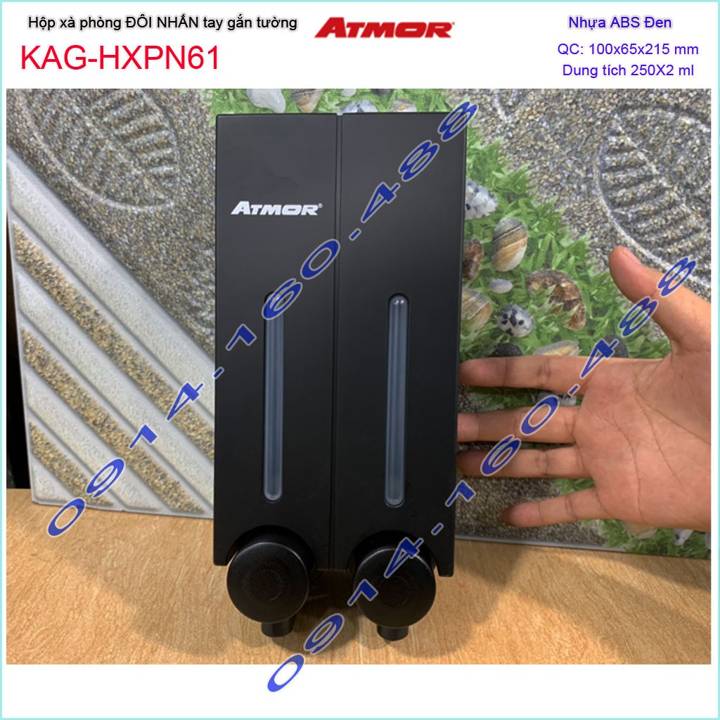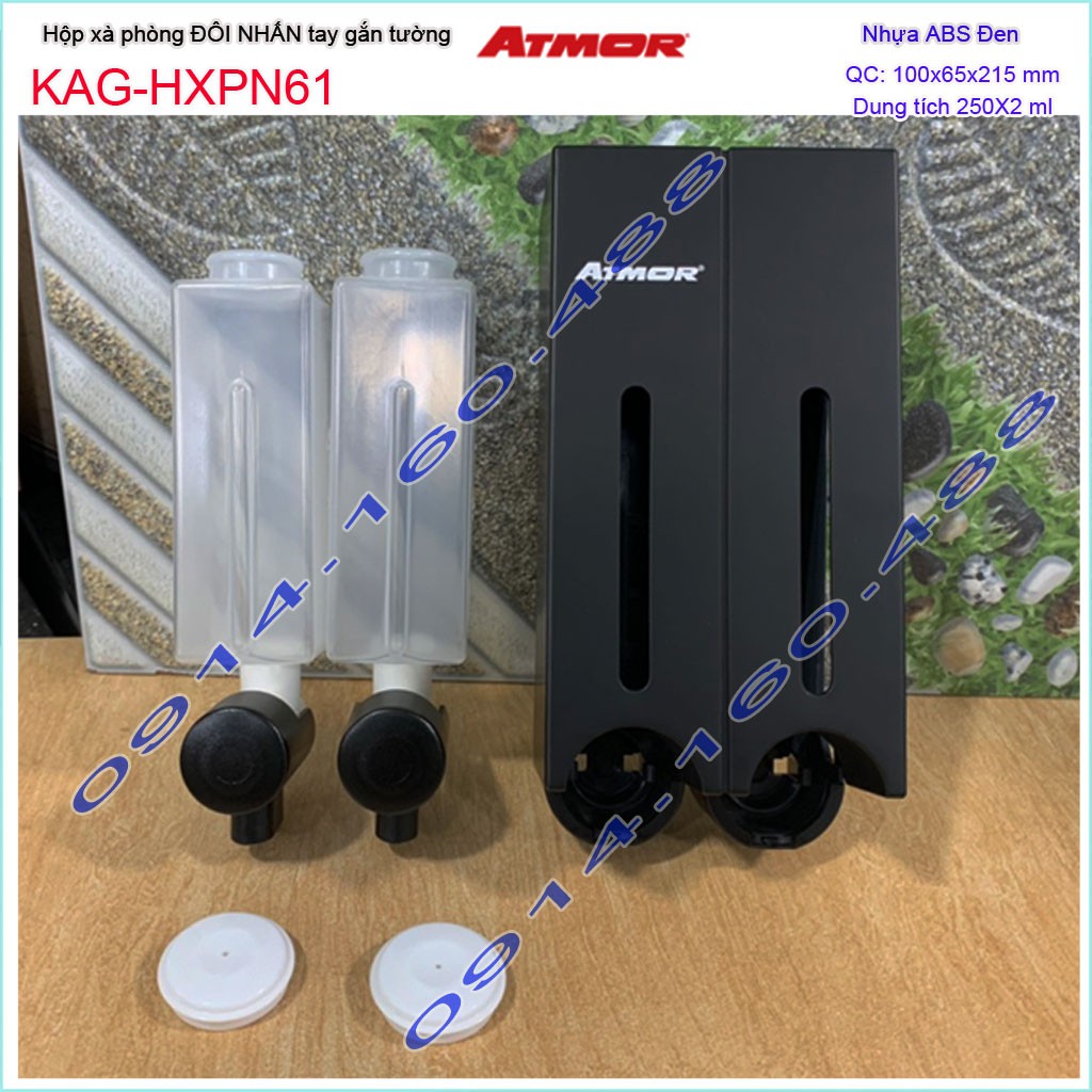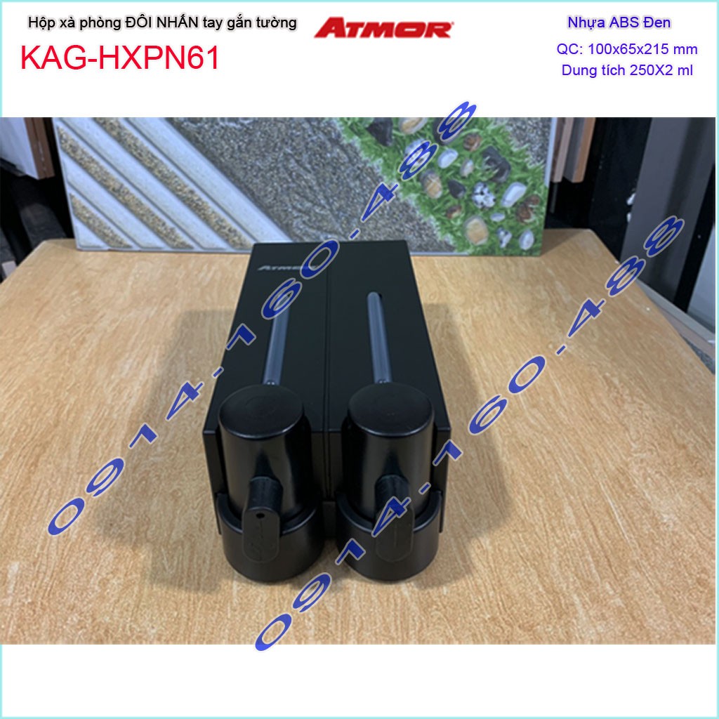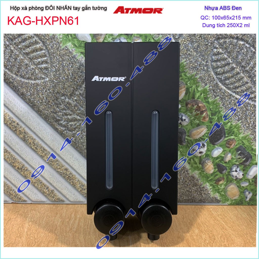 Hộp xà bông nhấn màu đen Atmor KAG-HXPN61-Black , hộp đựng xà phòng đôi 250ml x2 nhấn êm sử dụng tốt