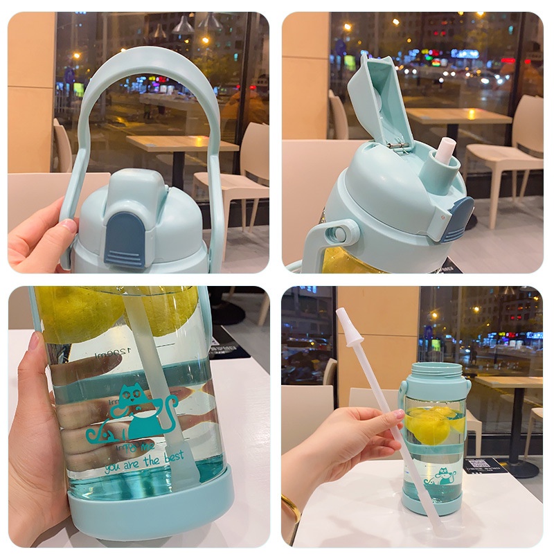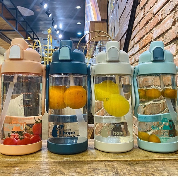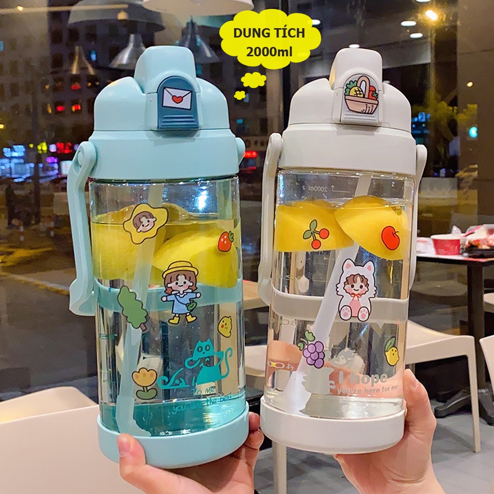 Bình Nước 2 Lít Có Quai Cầm Chắc Chắn, Chai Nhựa Đựng Nước Uống Detox Dung Tích 2000ml, Bình Đựng Nước Siêu ToCốc rơm Dung tích lớn Trái tim Cô gái Quy mô đơn giản Cốc nước Người lớn Sinh viên Thể thao Thể dục Chai nước lớn Di động ngoài trời